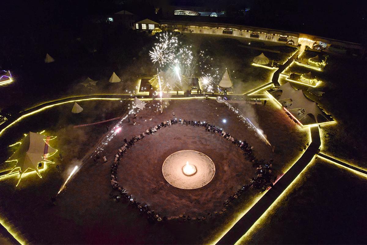 大家围绕着篝火,燃起烟花