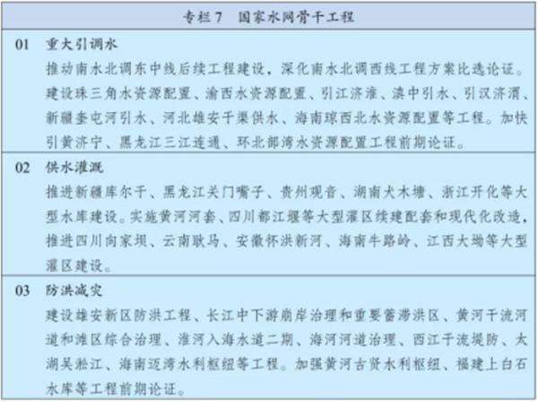 坚持节水有限,完善水资源配置体系,建设水资源配置骨干项目,加强重点水源和城市应急备用水源工程建设。实施防洪提升工程,解决防汛薄弱环节,加快防洪控制性枢纽工程建设和中小河流治理、病险水库除险加固,全面推进提防和蓄滞洪区建设。加强水源涵养区保护修复,加大重点河湖保护和综合治理力度,恢复水清岸绿的水生态体系。